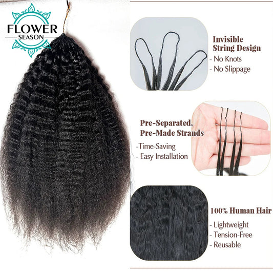 Kinky Straight Crochet Human Hair Extensions Knotless Pre-Separated Crochet Hair Reusable 60g 50strands Natural Black for Women
