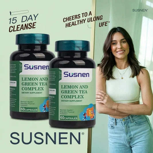 Susnen Lemon Green Tea Complex Capsule Dietary supplement contains flaxseed essence, which helps regulate body functions and hel