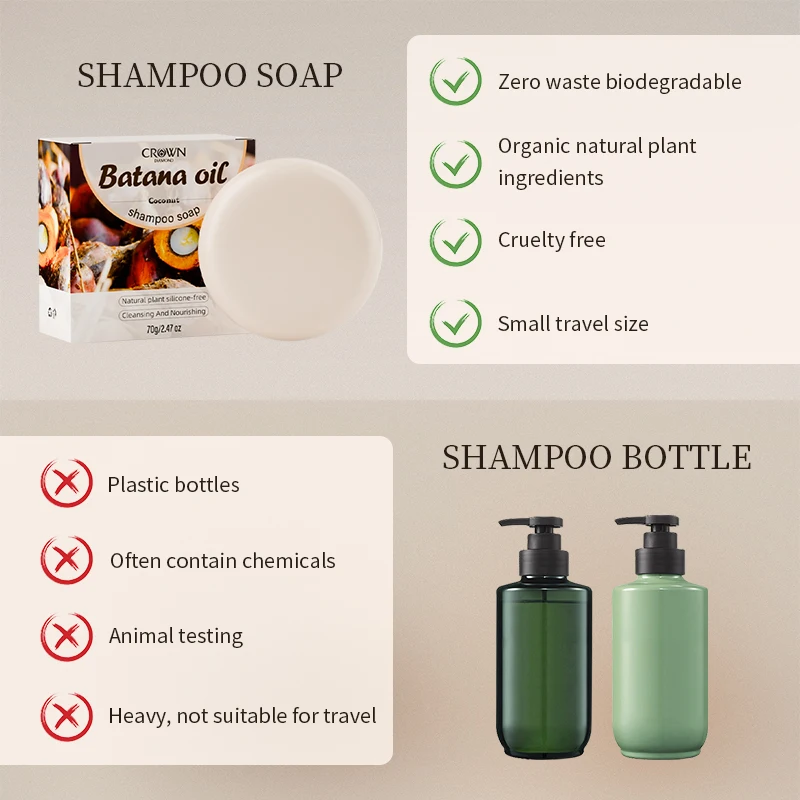 3. Convenient and easy to use: Compared with ordinary shampoo, Batana shampoo soap is more convenient to carry and less likely to leak. When washing your hair, just gently massage your scalp and rinse it off.