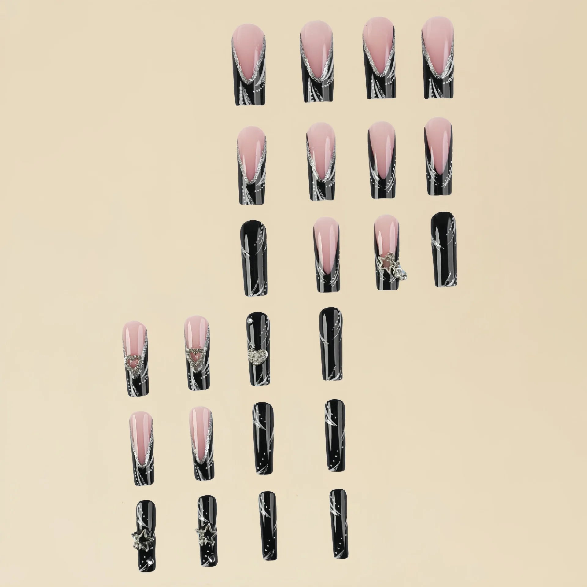 24PCS/1BOX Black French Wearing Sweet and Cool Nail Patch Glitter Love Stars in Europe and America Dark Department Fake Nail