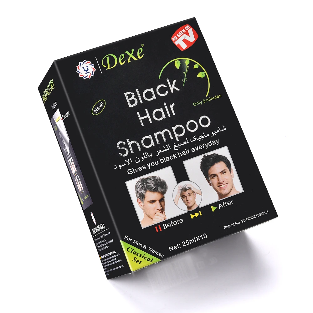 Recapture your handsome black hair with this revolutionary, no-fuss instant blackening shampoo. Black hair shampoo colors your hair black in just 5 minutes and lasts up to 4 weeks.