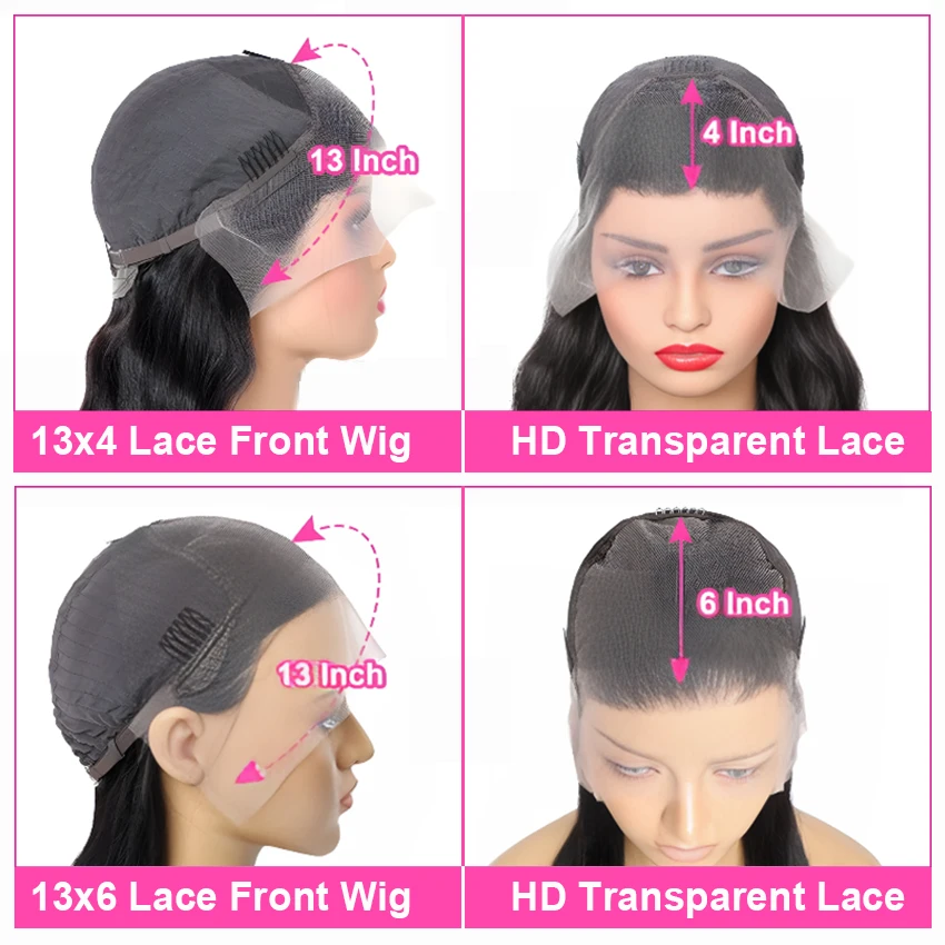 Body Wave 13x4 Lace Front Wigs Brazilian Human Remy Hair 13x6 HD Transparant Swiss Lace Frontal Wig 180% Density Pre Plucked