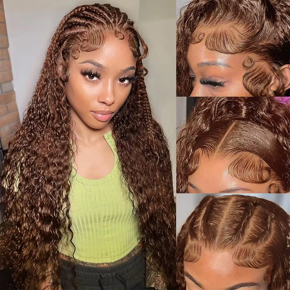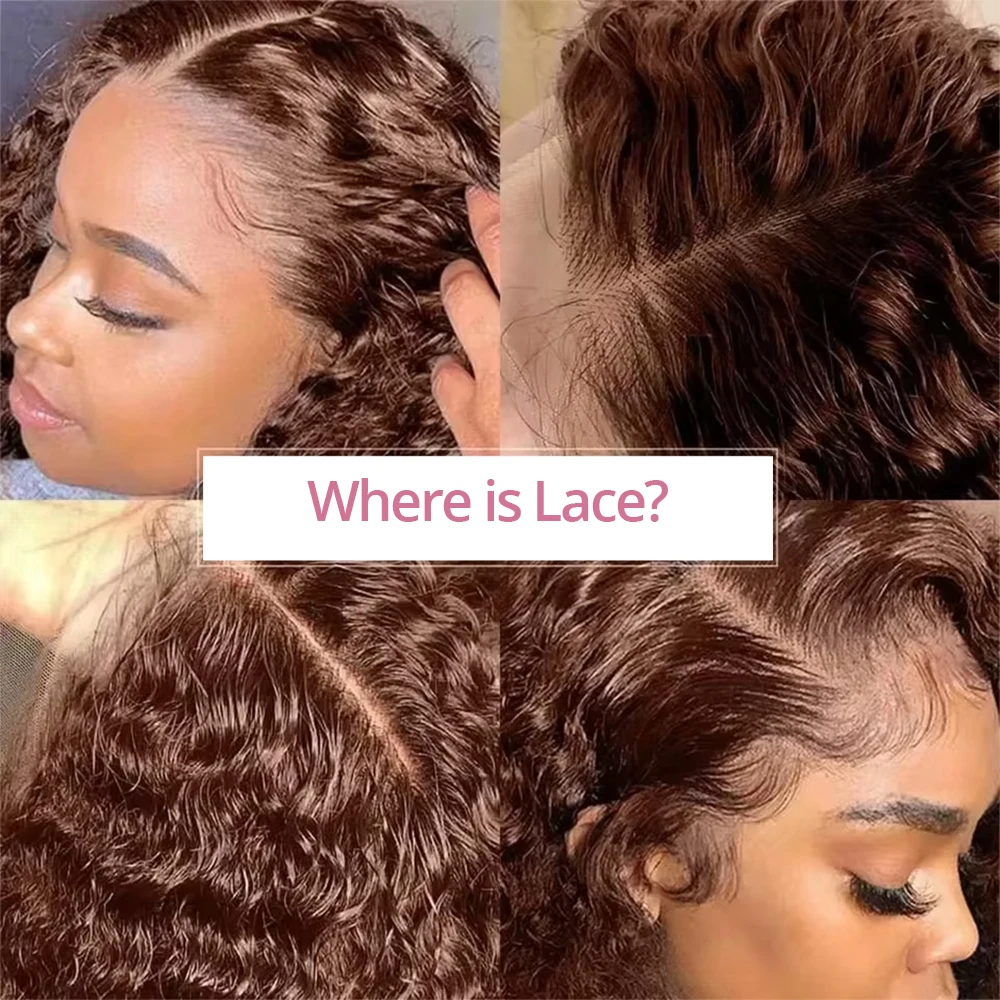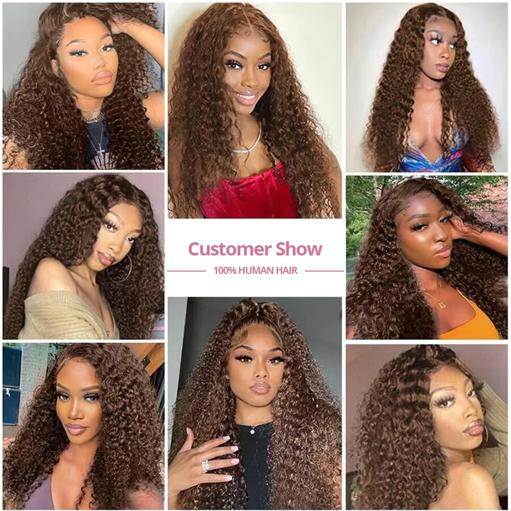 Chocolate Brown Deep Wave 13x6 Lace Front Wig Human Hair 250 Density Curly 4 Colored Transparent 13x4 Lace Frontal Wig For Women