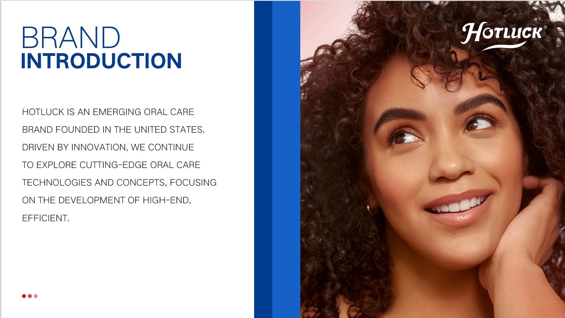 We are committed to providing consumers with high-quality and eficient oral care products, so that everyone can have a healthy and cleansmile,"HOTLUCK" comes from the love of every consumer's sense of luck. Just as the God of luck favors everyone, HOTLUCk is commited tobringing good luck to your oral health.HOTLUCk is not only an oral care brand,but also a refection of life atitude, helping consumers to havea confident and healthy smileHOTLUCk hopes to be a lucky litle thing in your life,transmiting positive energy and making the world full oflove and warmth, whether it is a fresh brushing and cleansing in the morning or a gentle oral massage in the evening.