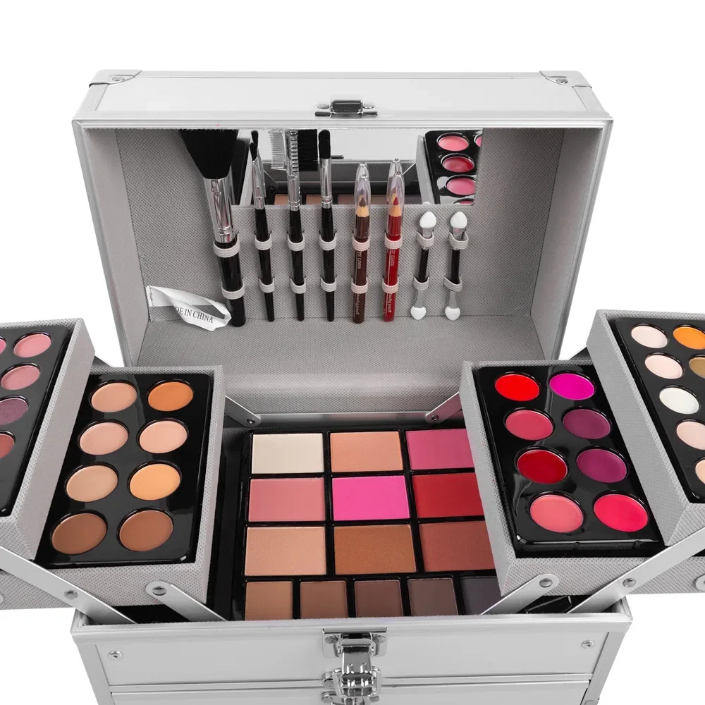 Product packaging contains: Lipstick, nail polish, lip gloss, eye shadow, liquid foundation, blush, lip pencil, brush, etc.