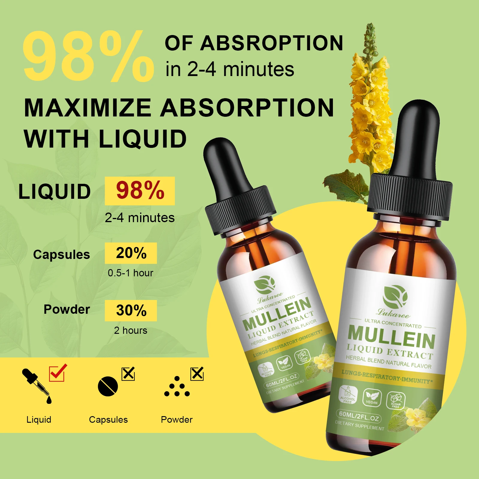 Mullein Drops Suitable For Lung, Lung Detoxification And Cleansing, Vegetarian Mullein Leaf Extract For Respiration, Immunity