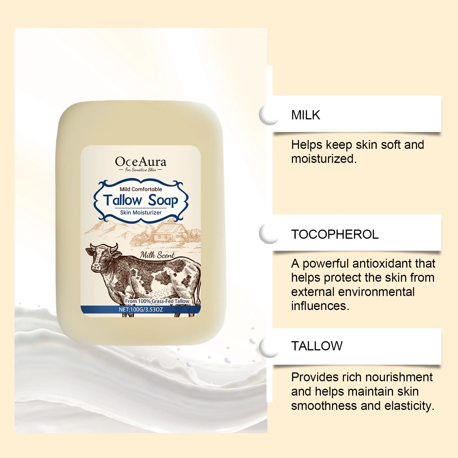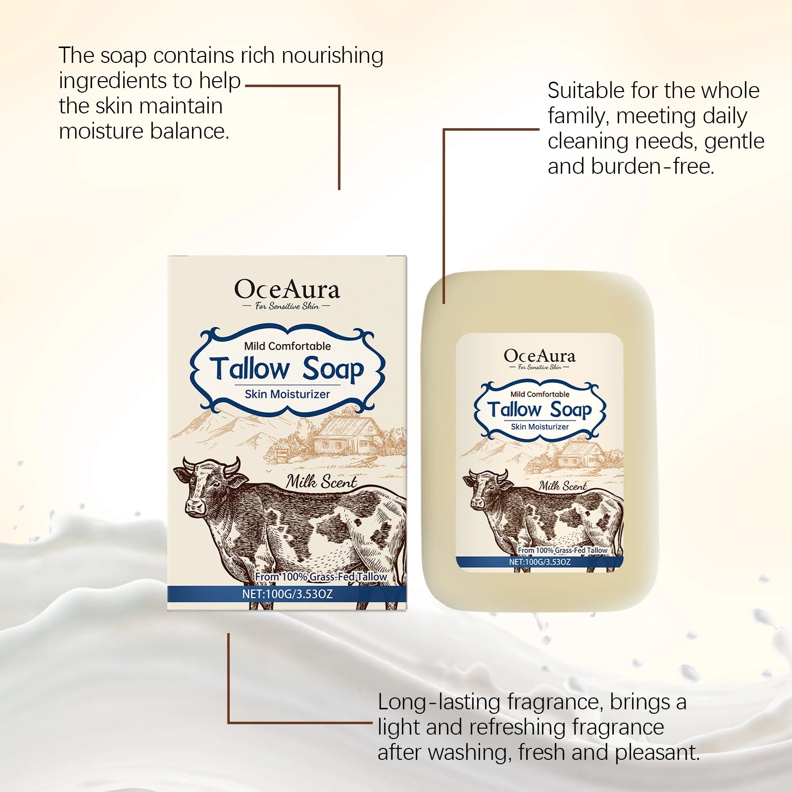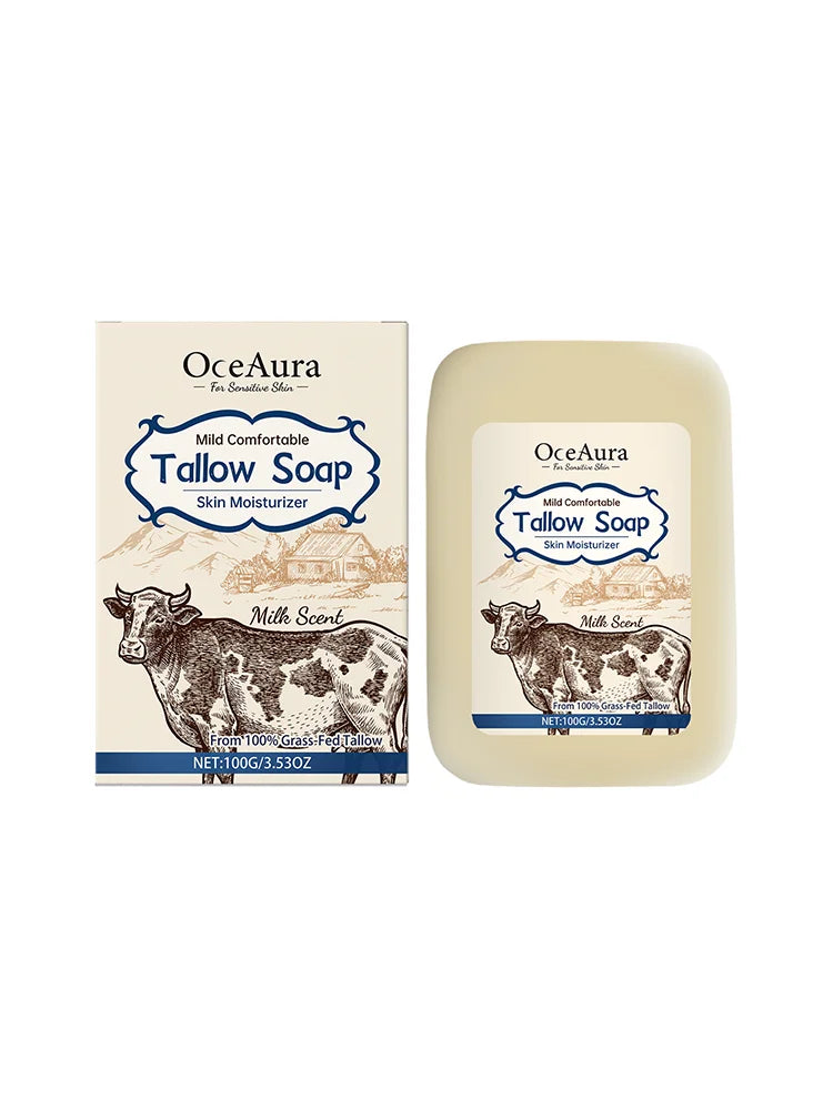 OCEAURA Tallow Soap, Beef Tallow Soap, Pure Tallow Balm Soap Bar for Sensitive Skin - Moisturizes, Soothes, and Hydrates 100g