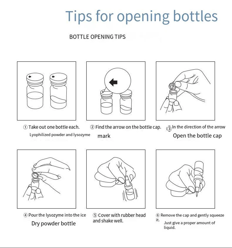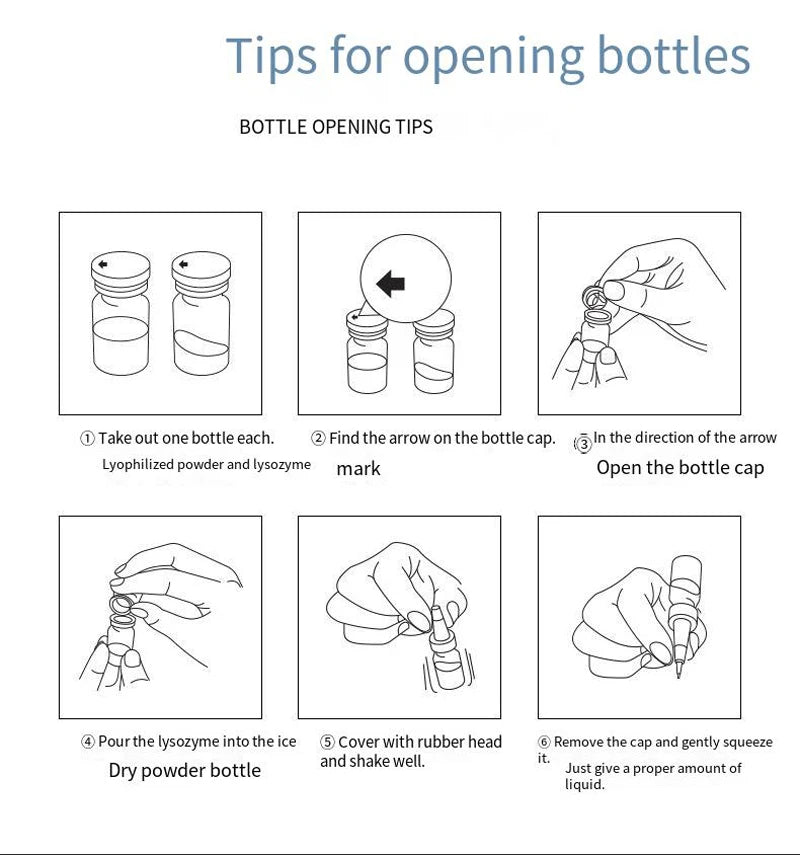 ① Take out one bottle each. Lyophilized powder and lysozyme