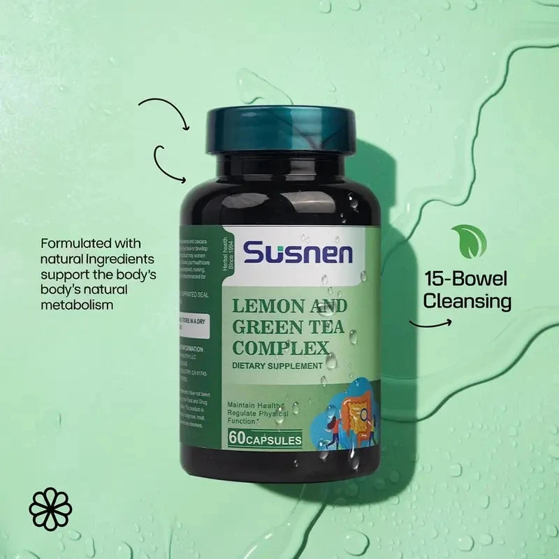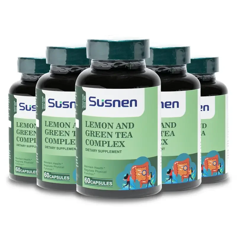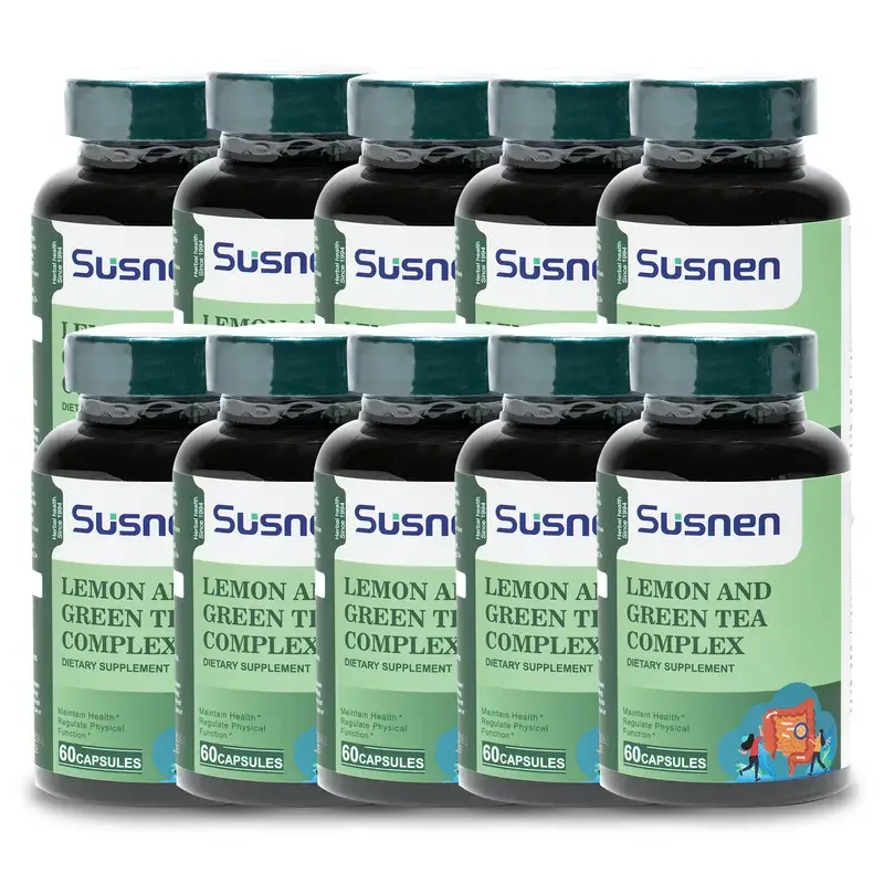 Susnen Lemon Green Tea Complex Capsule Dietary supplement contains flaxseed essence, which helps regulate body functions and hel