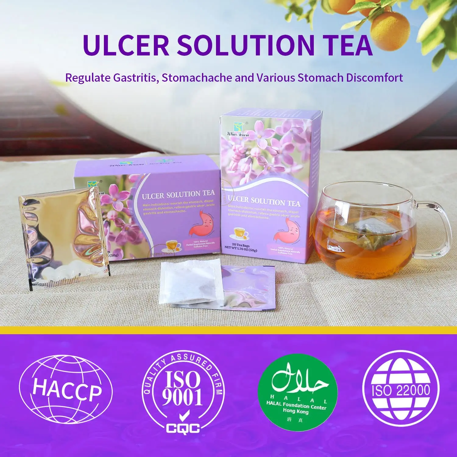 PRODUCT DESCRIPTION - Ulcer solution tea is a kind of herbal tea bag with a combination of various raw materials. It is made from a variety of wild raw materials, such as clove, poria, hawthorn, hand, sea buckthorn, yam, black buckwheat, malt, upright bacteria, etc
